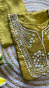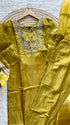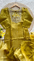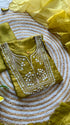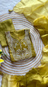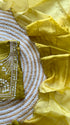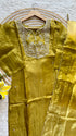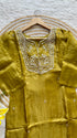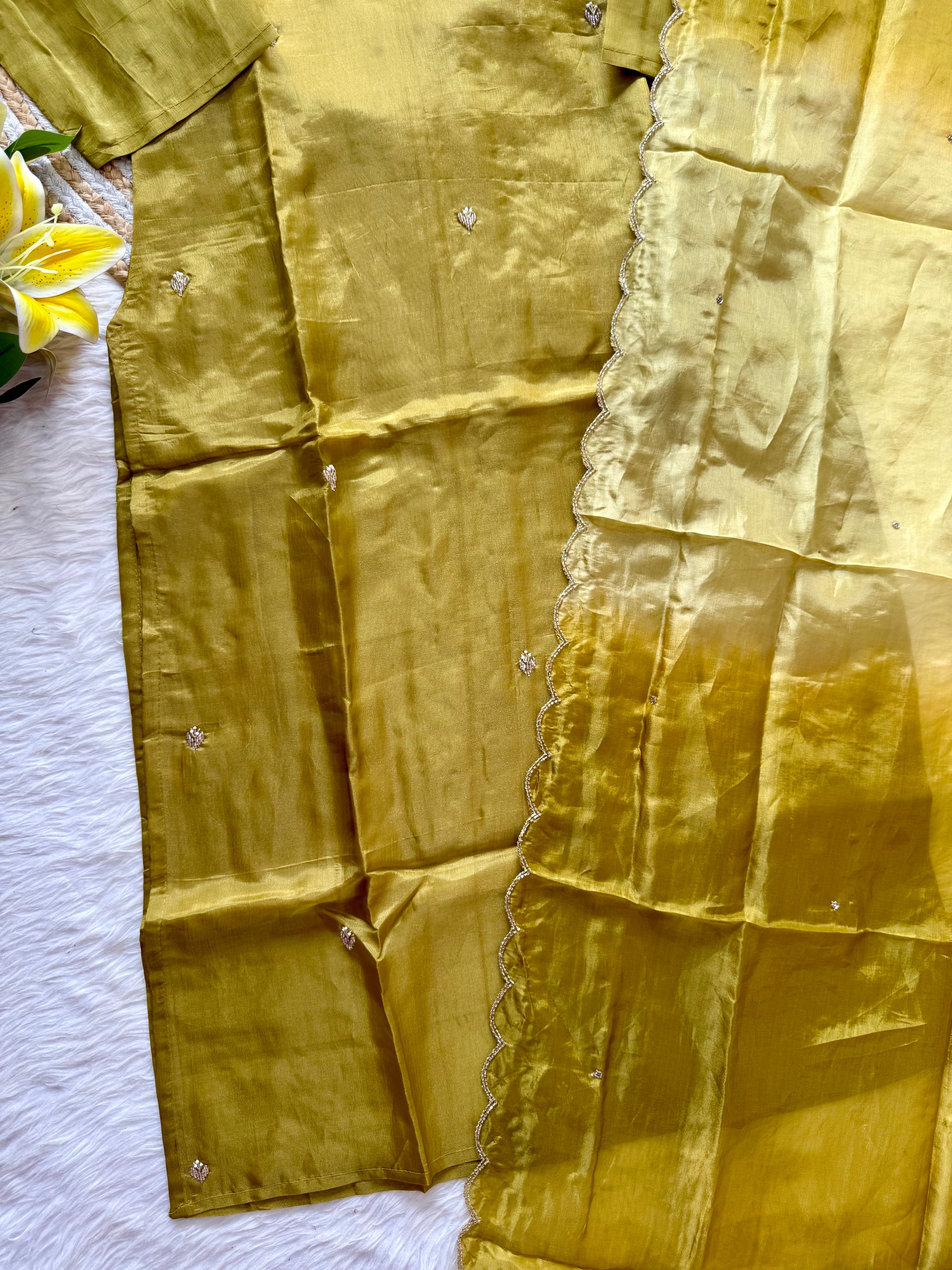 Beautiful Tissue silk kurta with with handwork on the yoke of the kurta with a long organza dupatta with pearl work details & a dola silk bottom