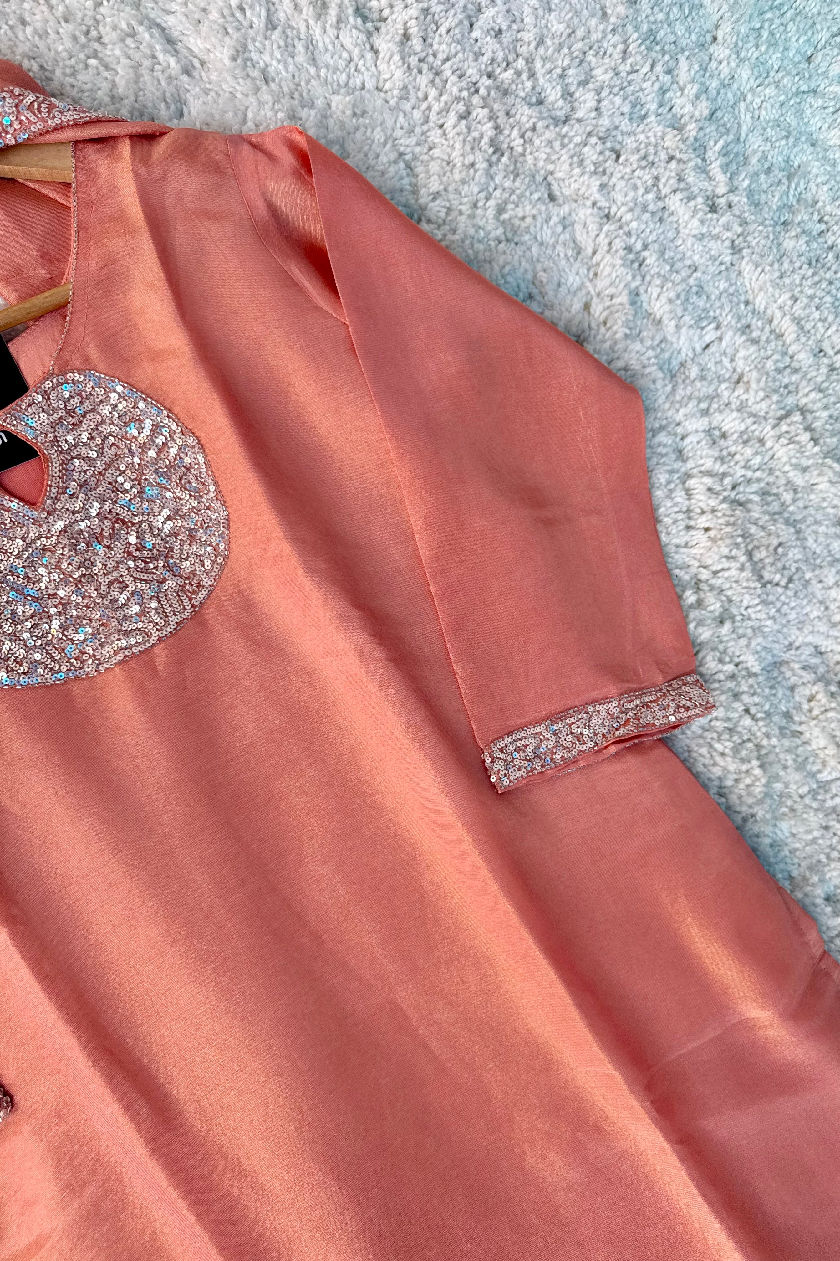 “SHINE” Beautiful Peach with gold tone shimmer tissue kurta set - XS