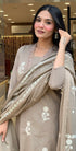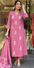 Flex cotton v neck kurta set with heavy embroidered work all over the top with embroidered work long cotton dupatta and a cotton bottom