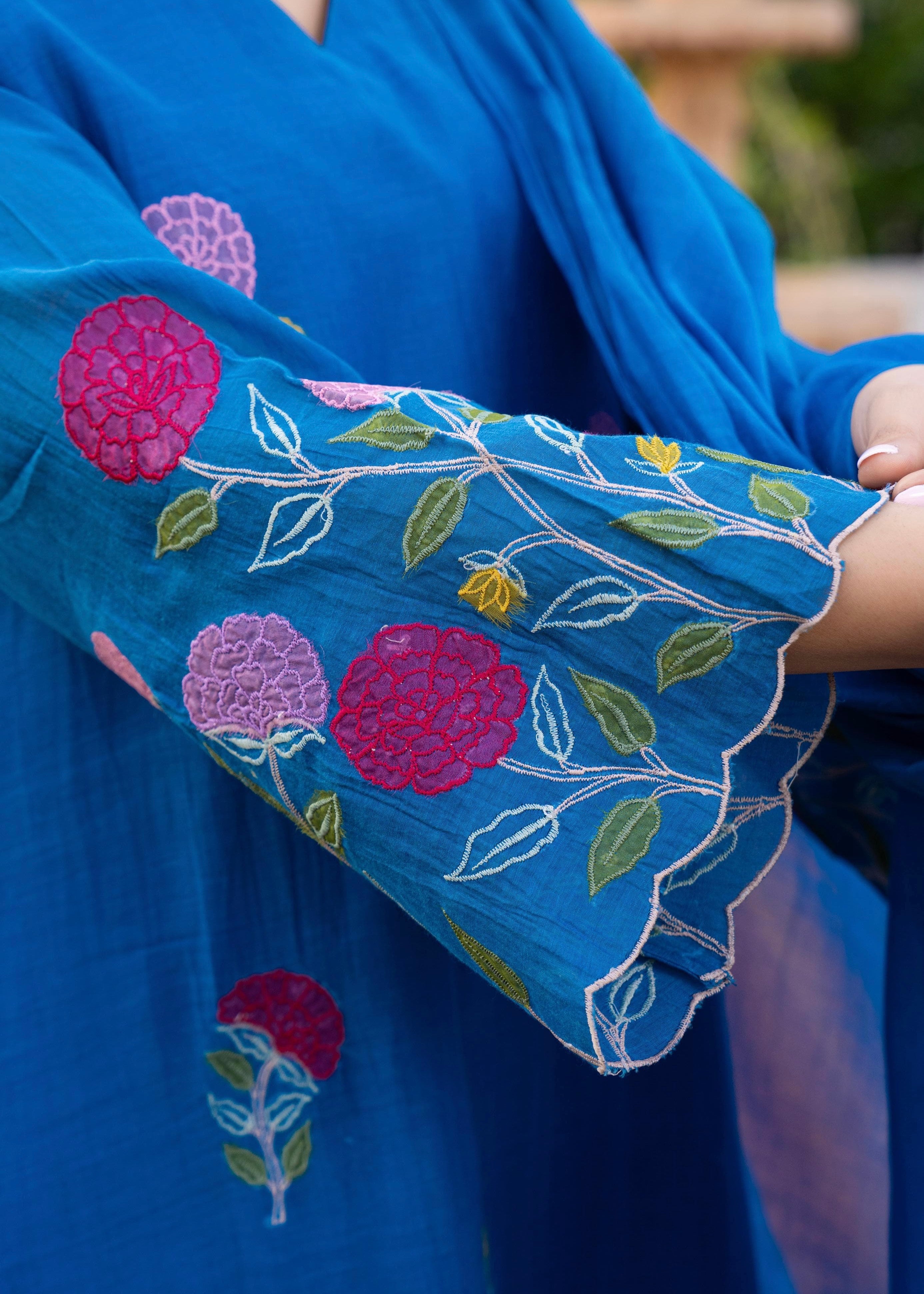 Premium mul Chanderi kurti with handwork on the yoke sleeves & Daman of the kurta with a handwork detailed mul Chanderi dupatta and a silk bottom