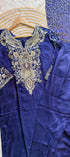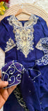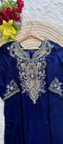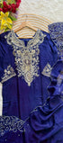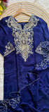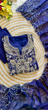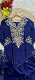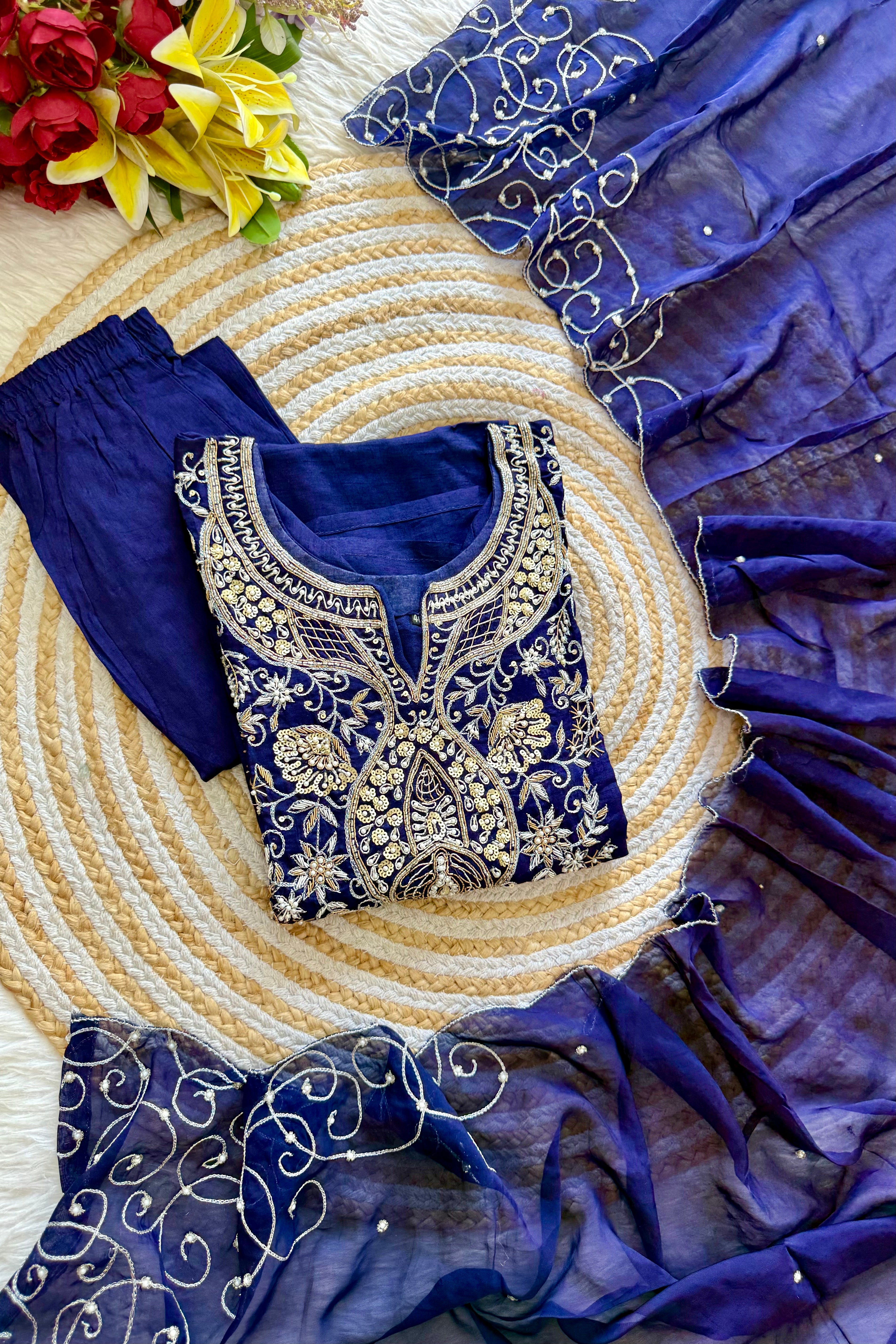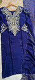 A very beautiful festival wear special RBL ye kurta set with heavy work on the yoke of kurta and sleeve, with a long handwork detailed viscose organza dupatta and a silk bottom with work