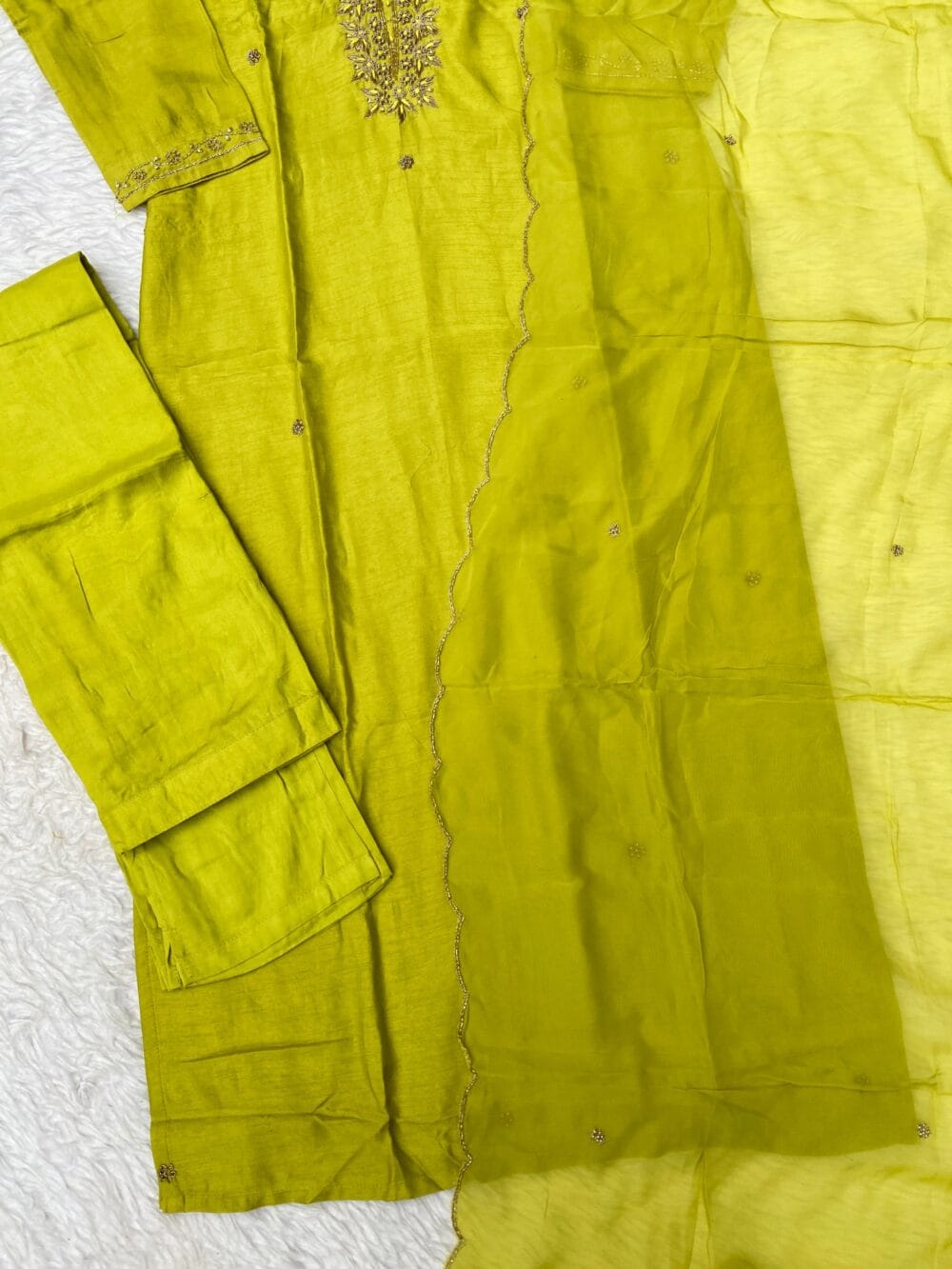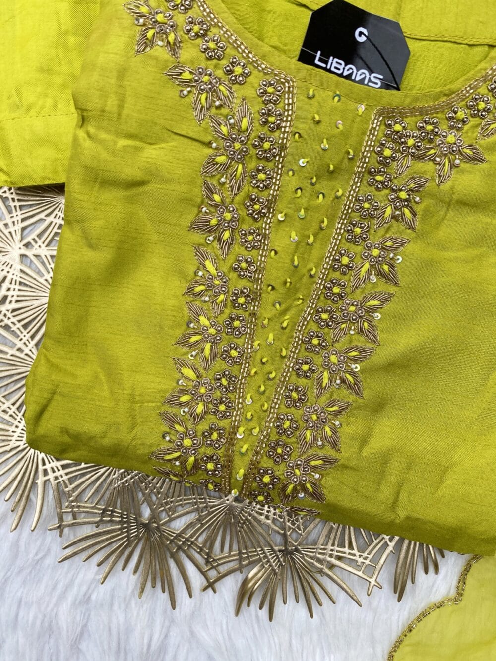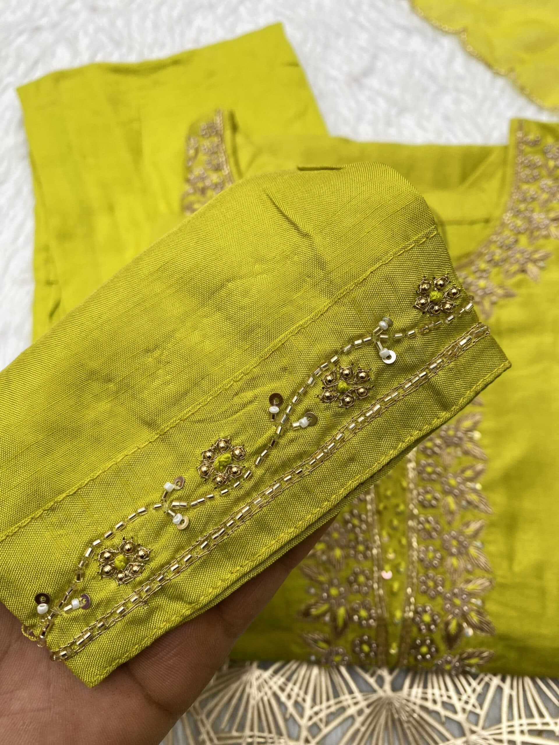 “Surbhi” Handwork Dola silk kurti pant with dupatta set