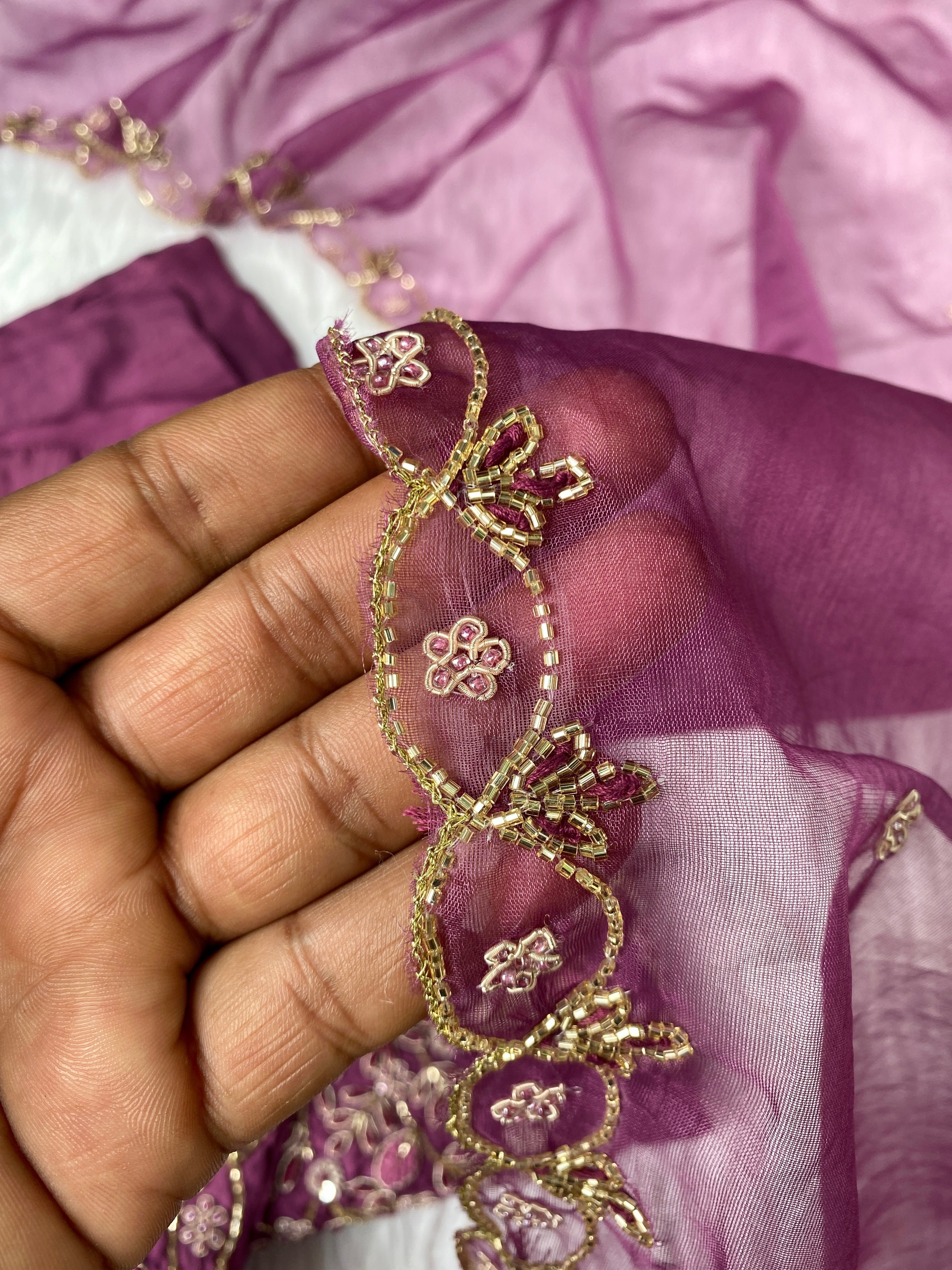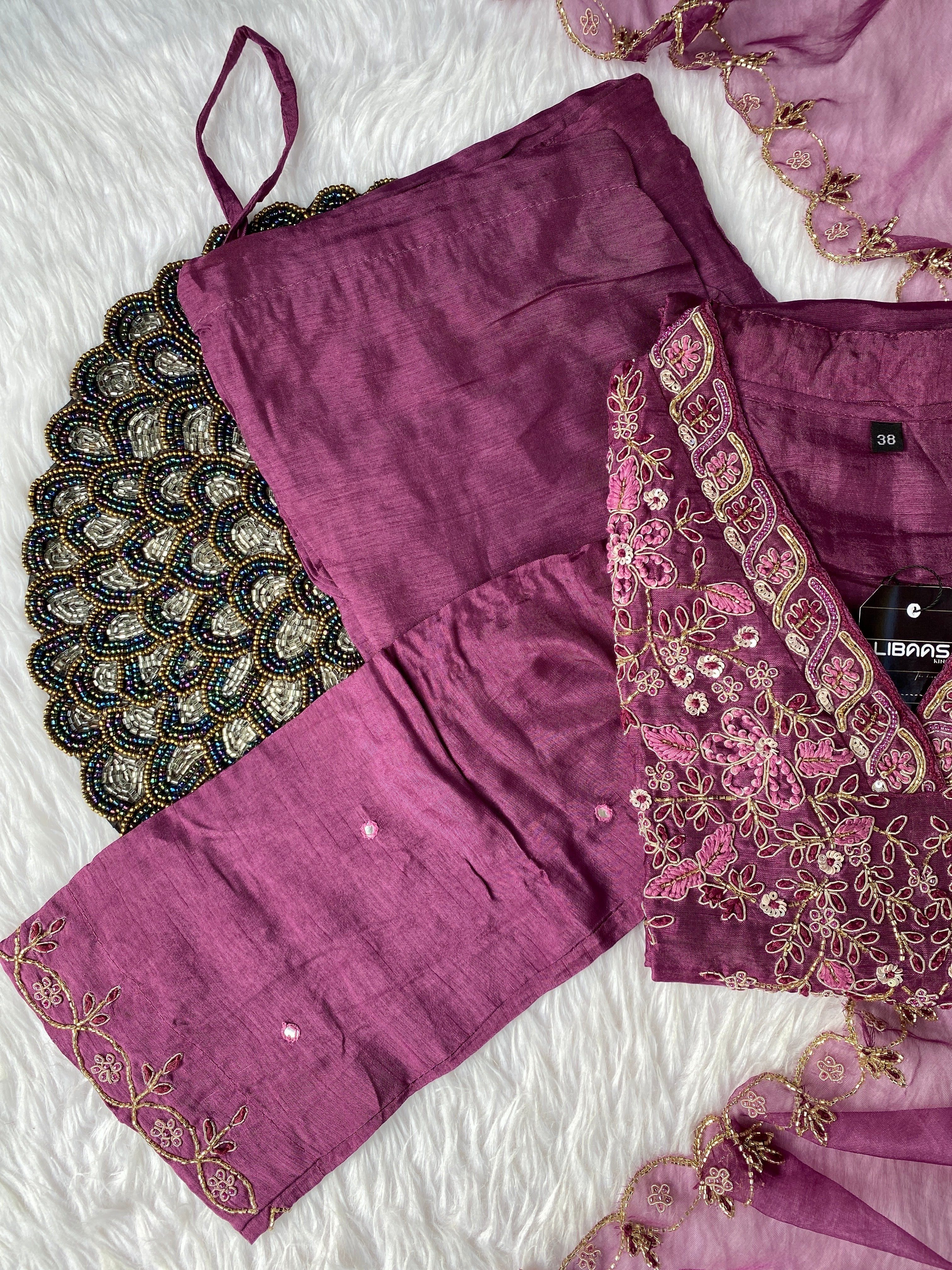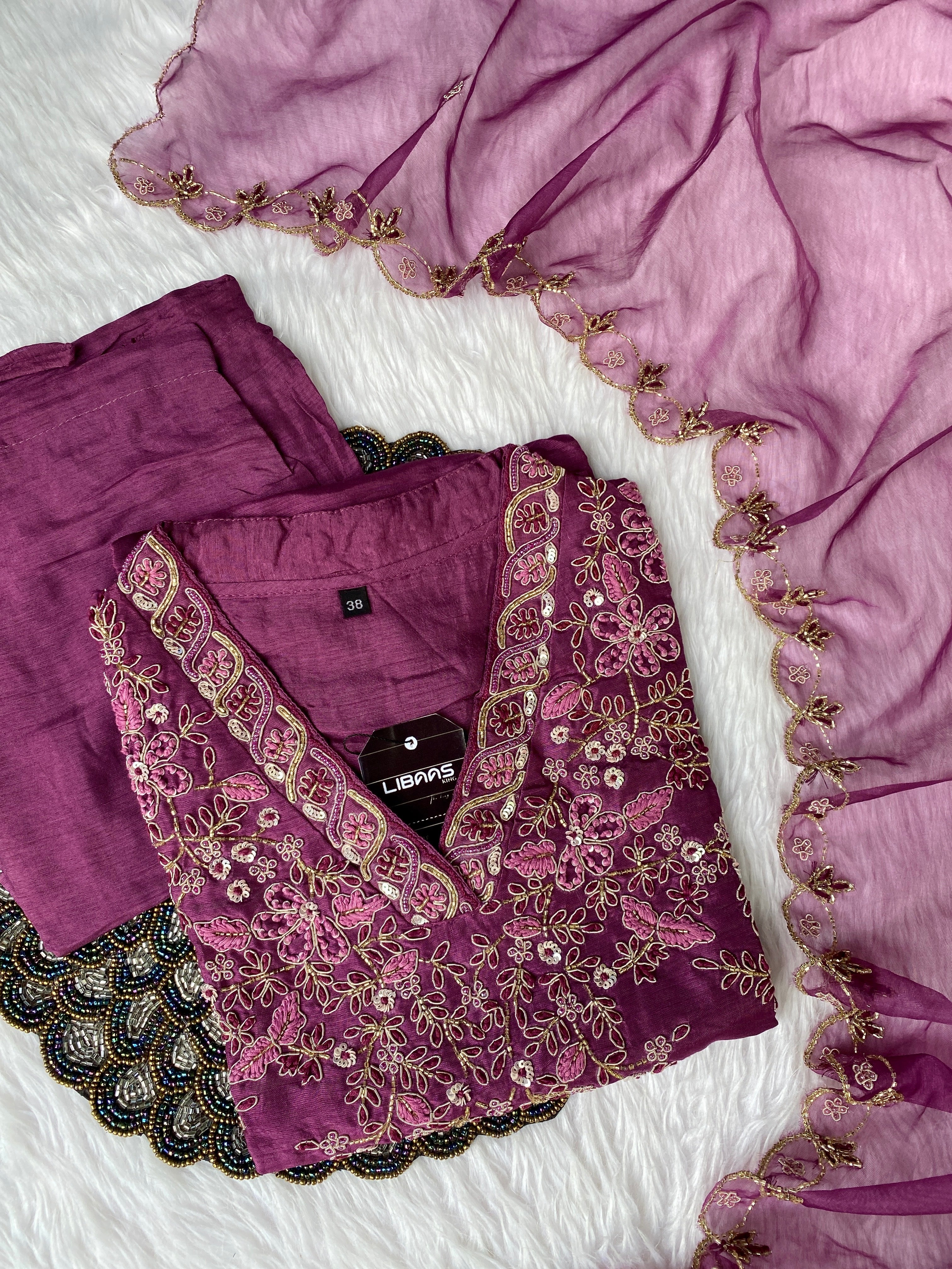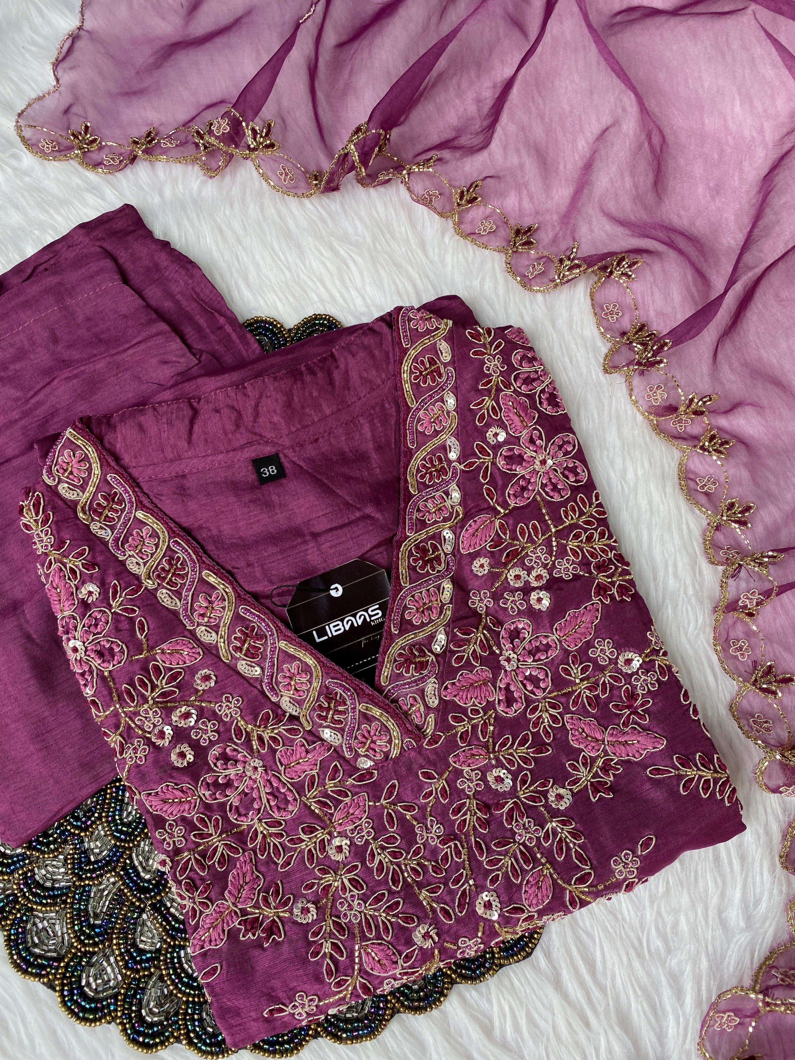 Glass tissue set with handwork on the yoke with a long dupatta and a plane bottom.