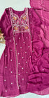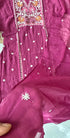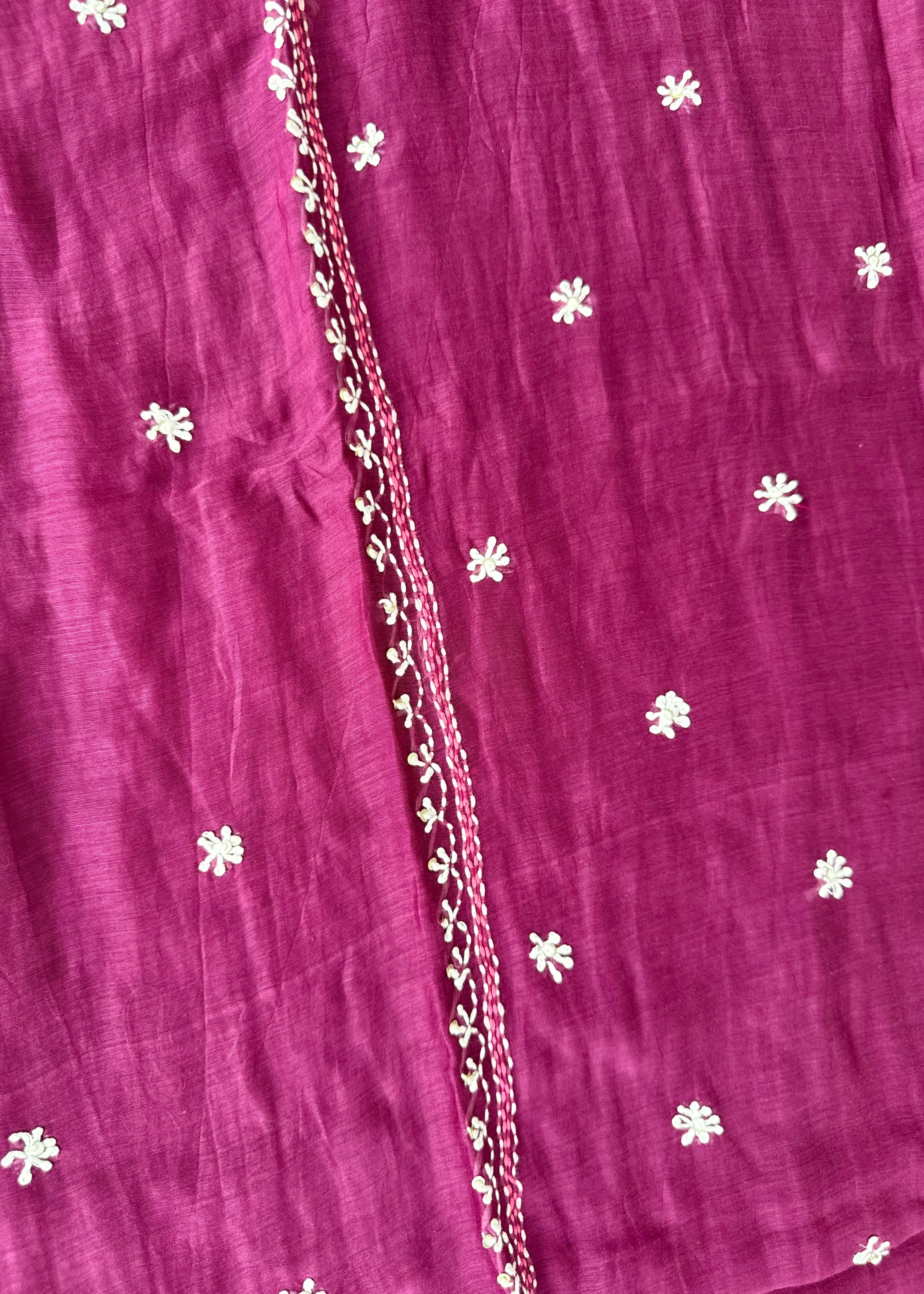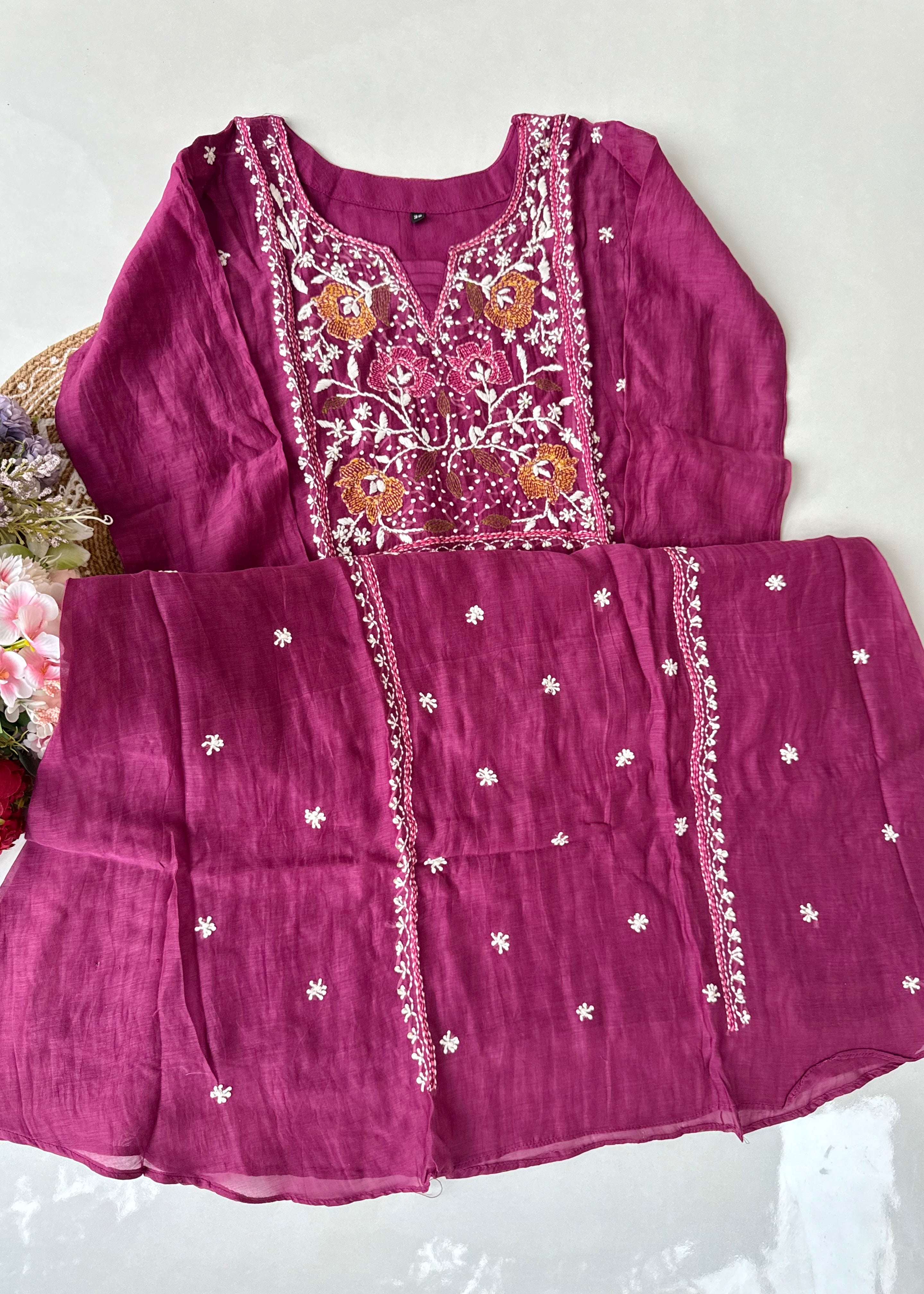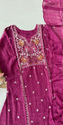 “Mulmul” Wine Thread work Mul Chanderi A Line kurta set