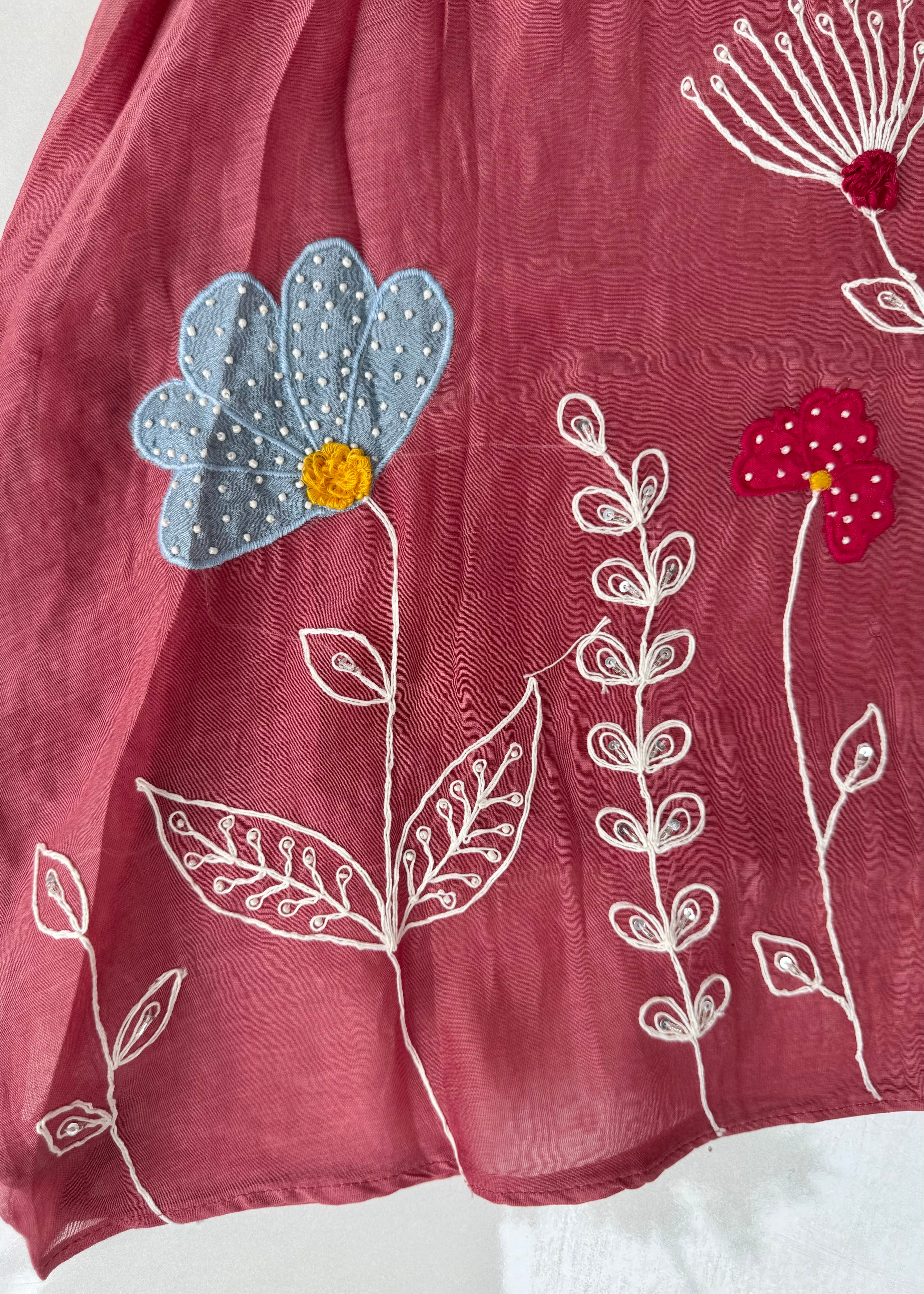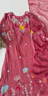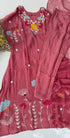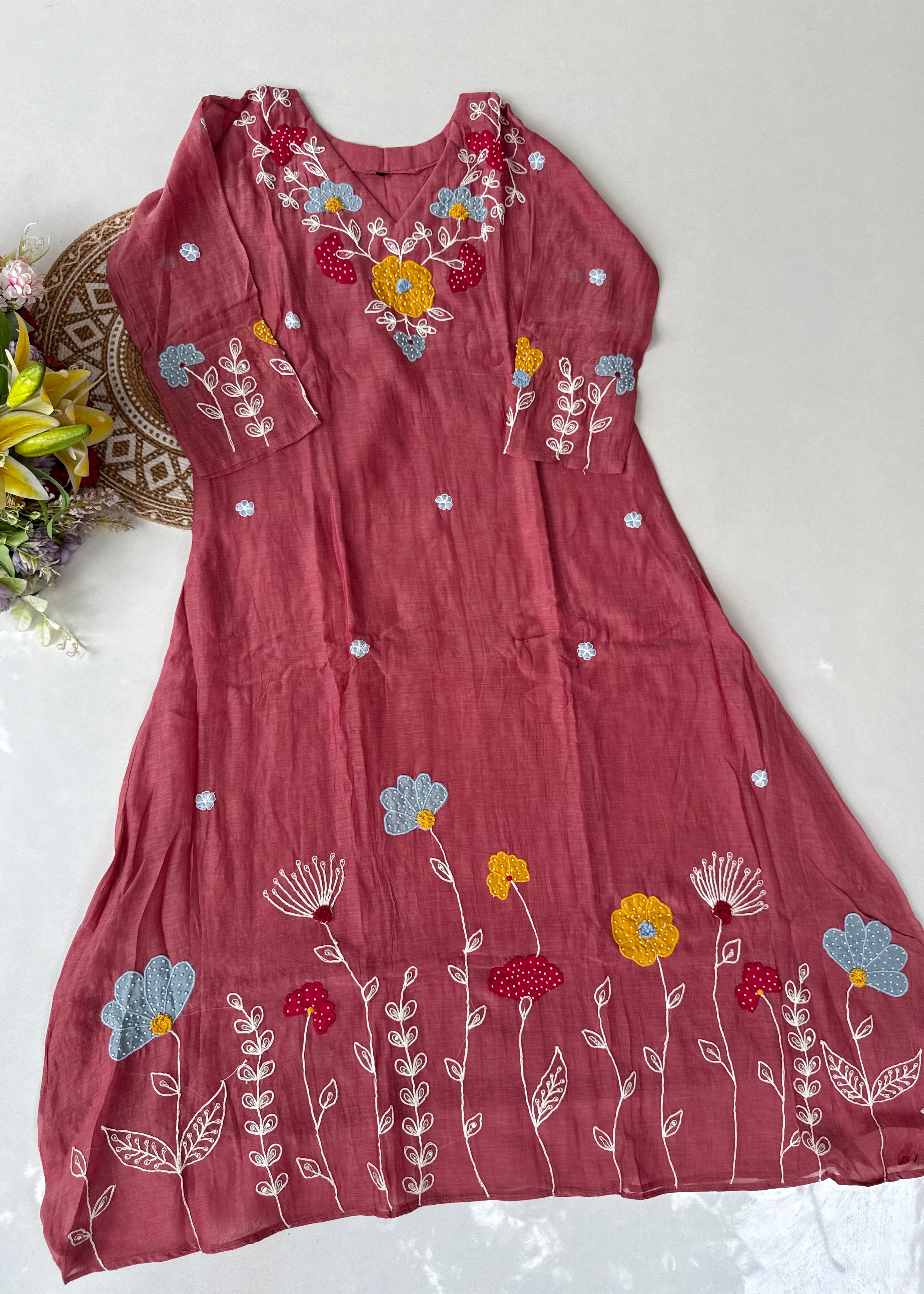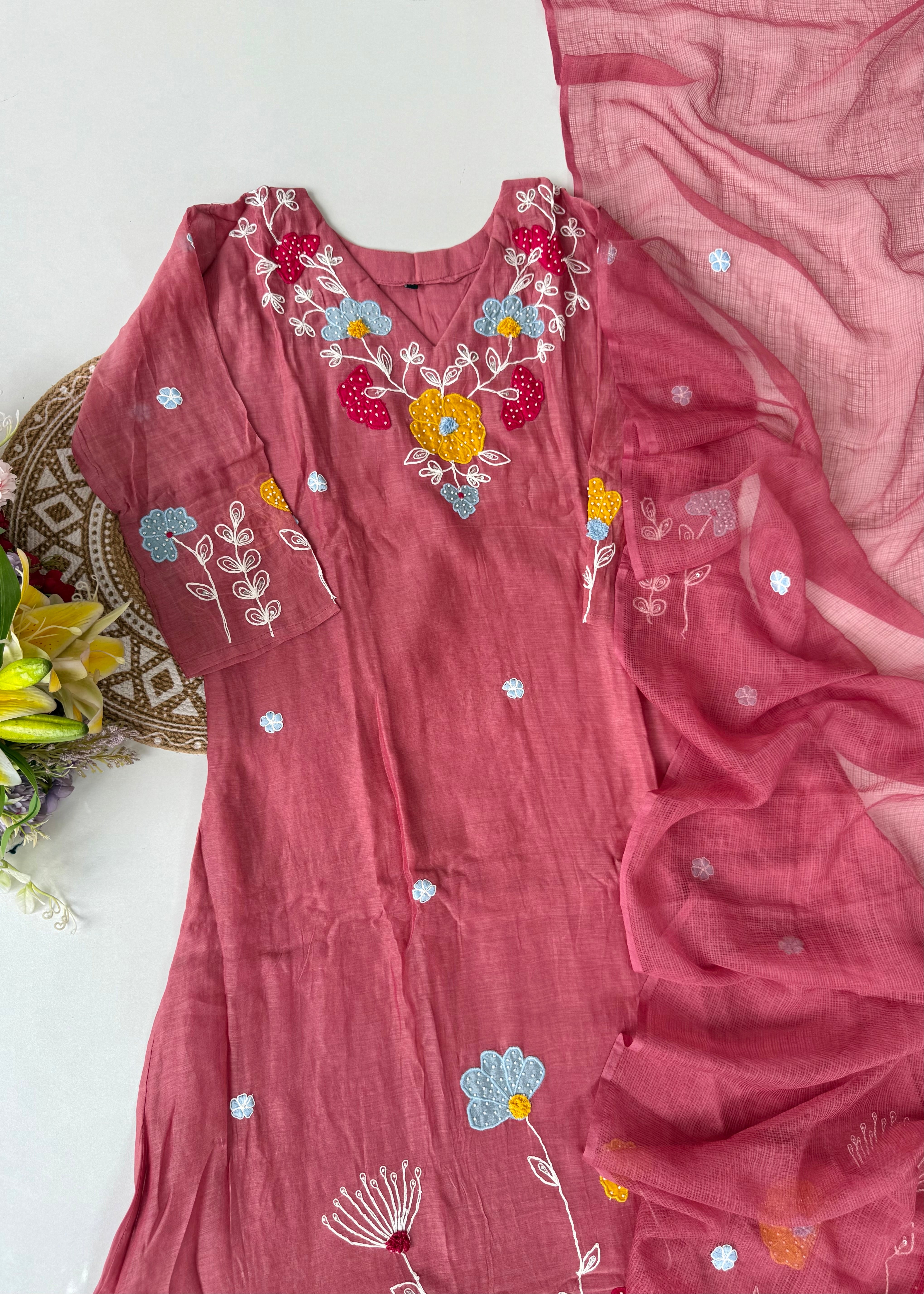 Premium mul Chanderi A line anarkali kurti with beautiful Appliqué work all over the top with a mul Chanderi dupatta with thread work and a mul chanderi bottom