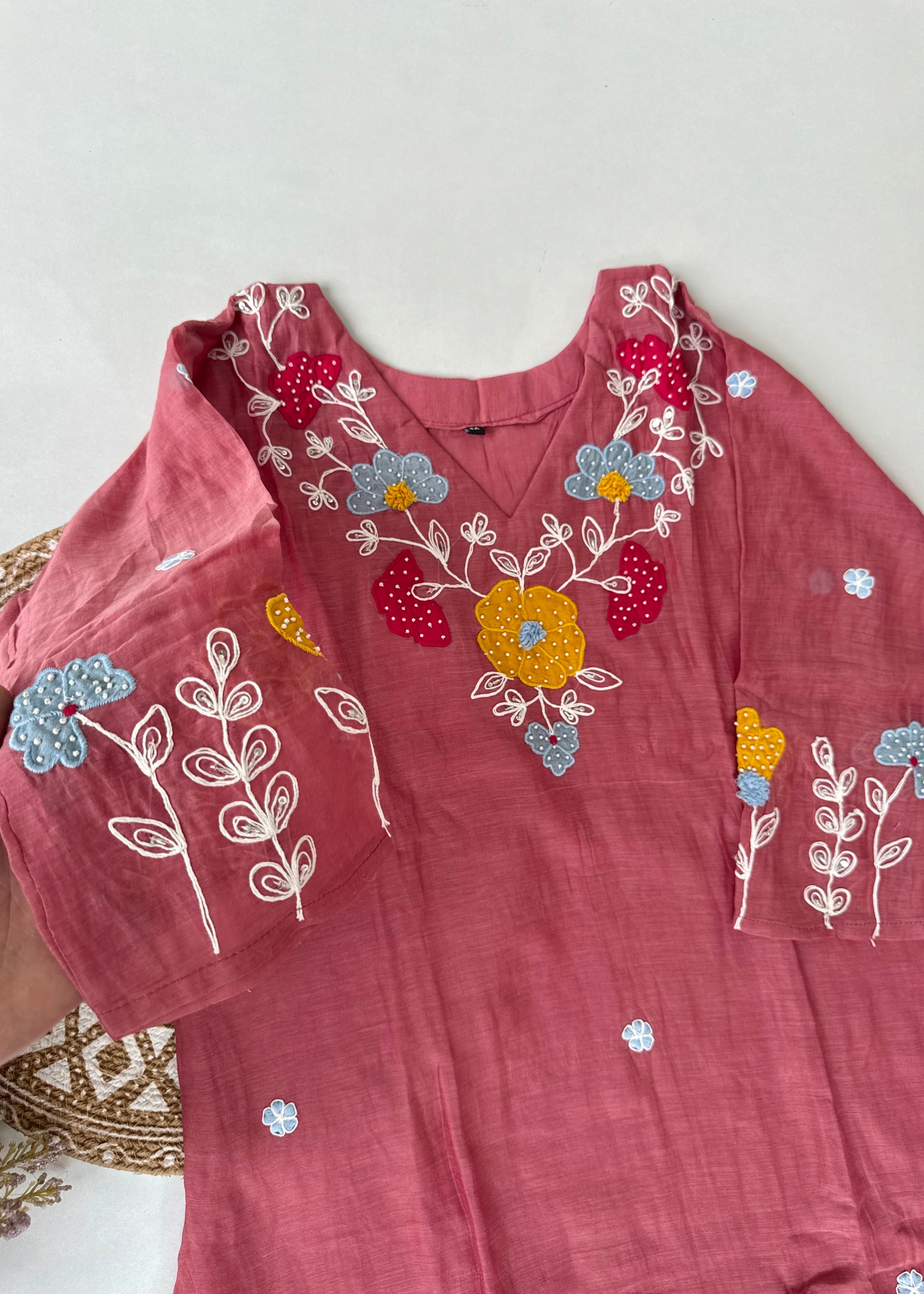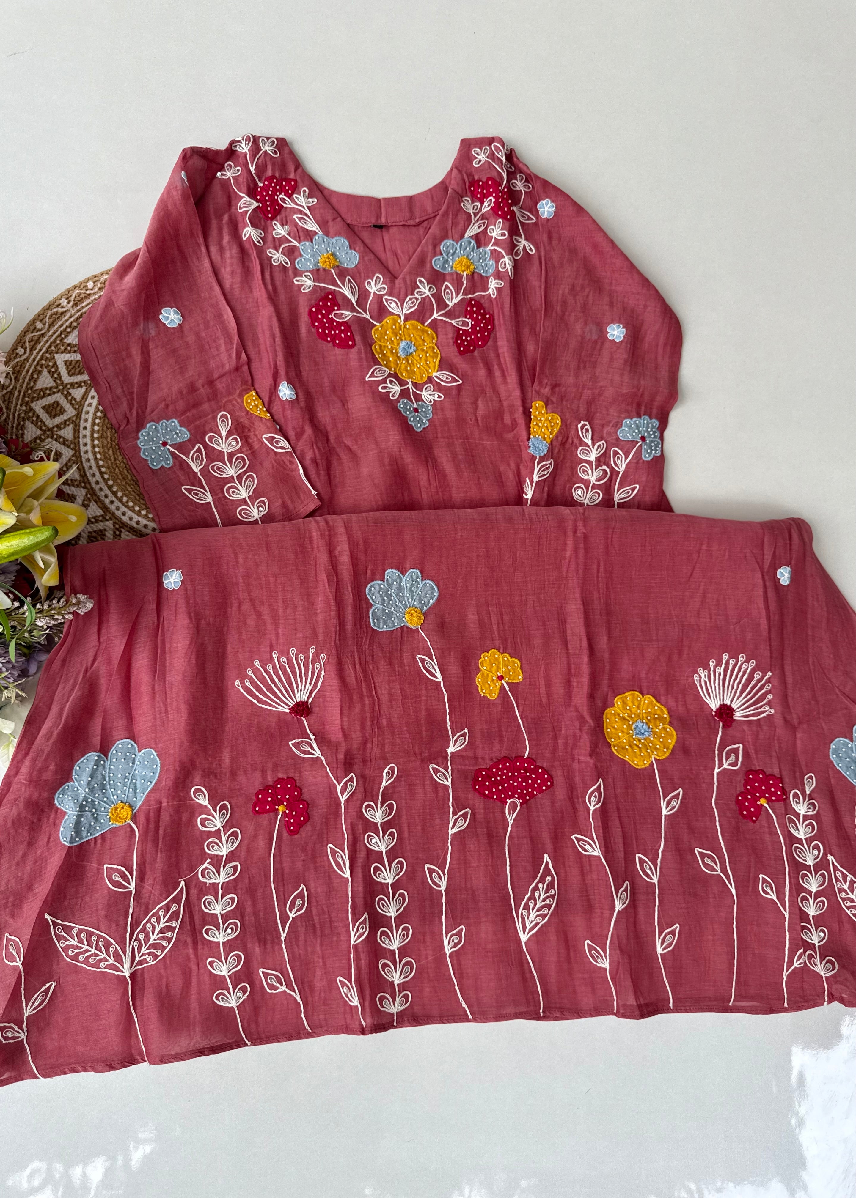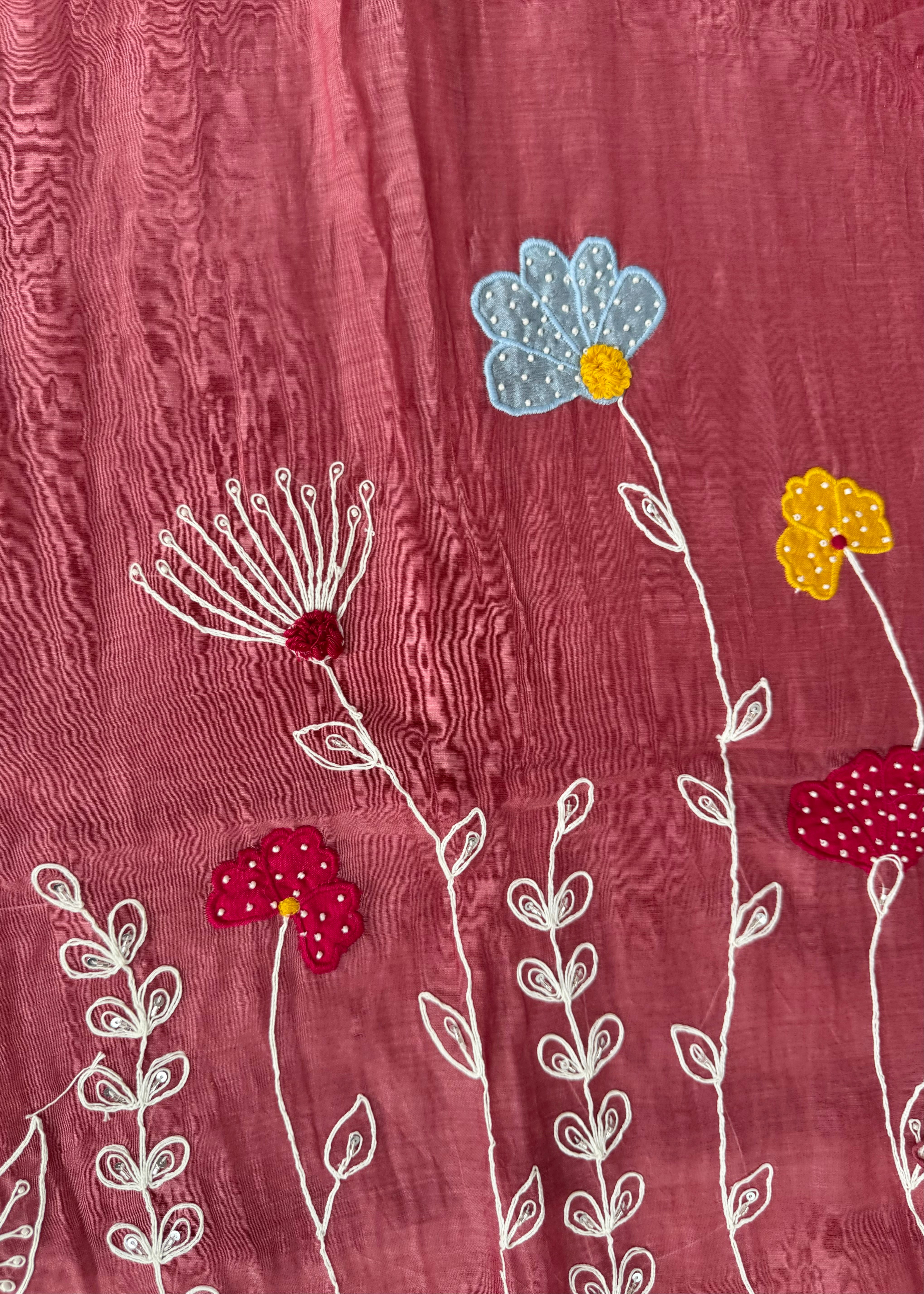 “Neesha” Mul Chanderi Applique work A Line kurta Set