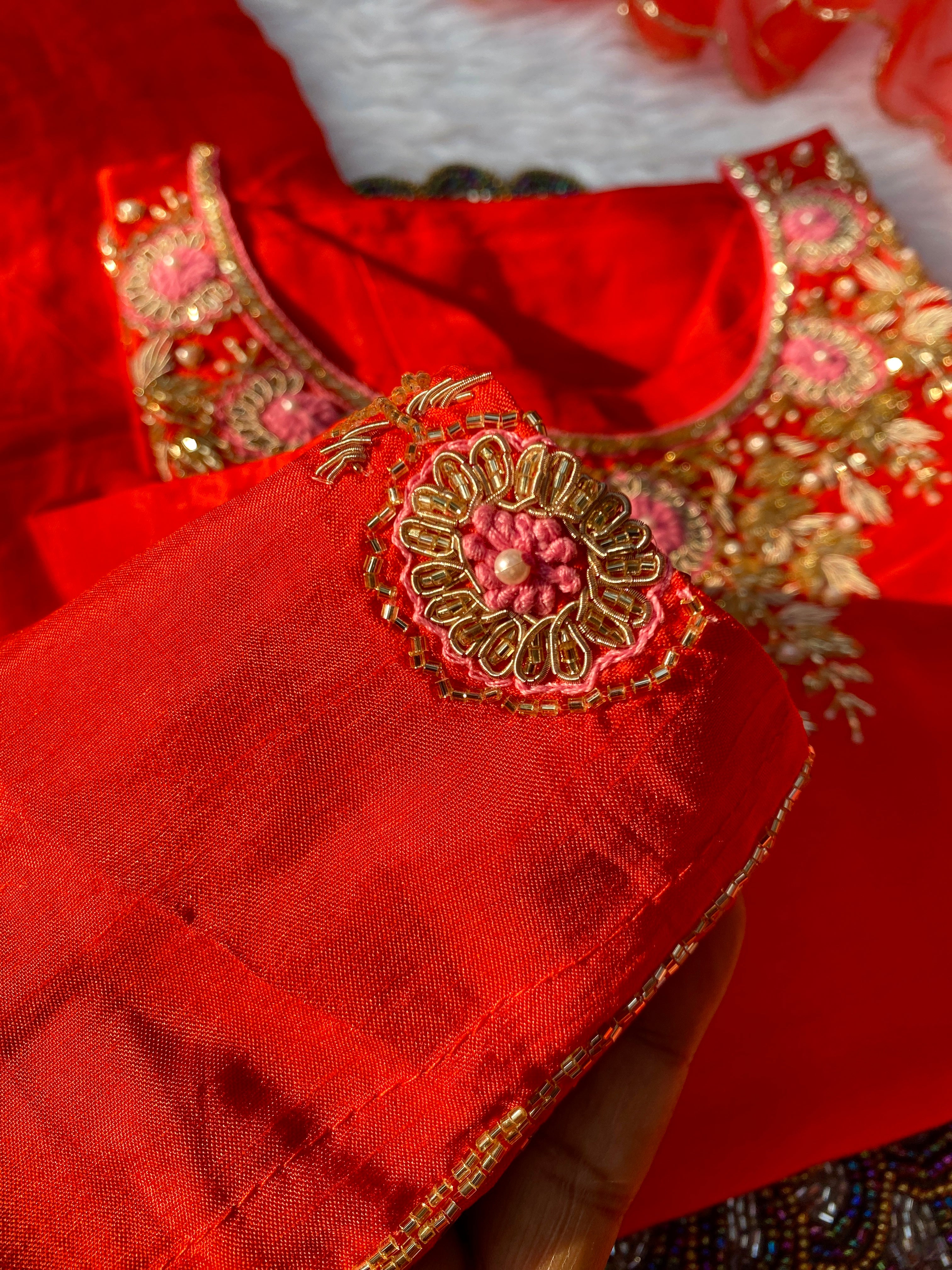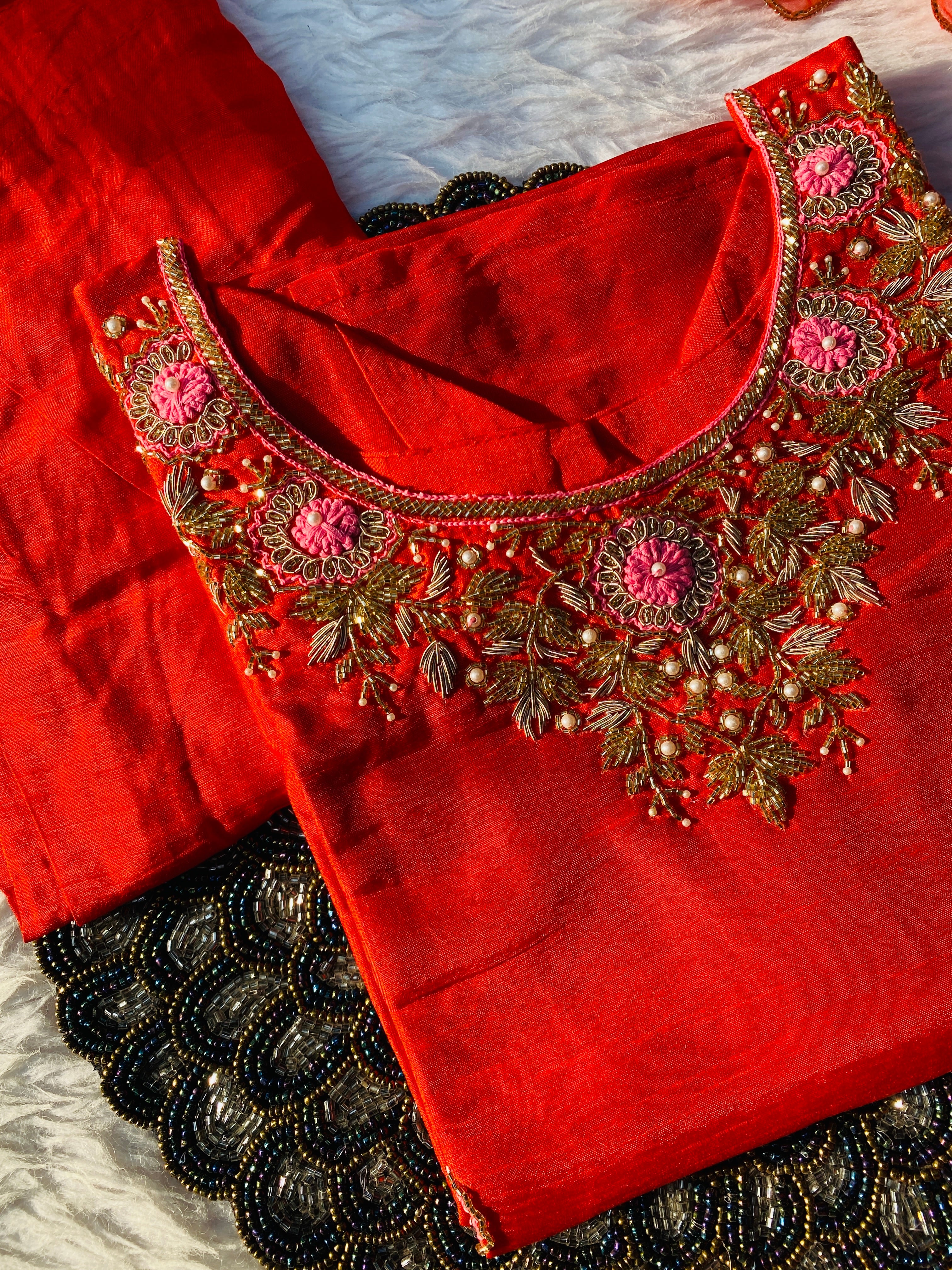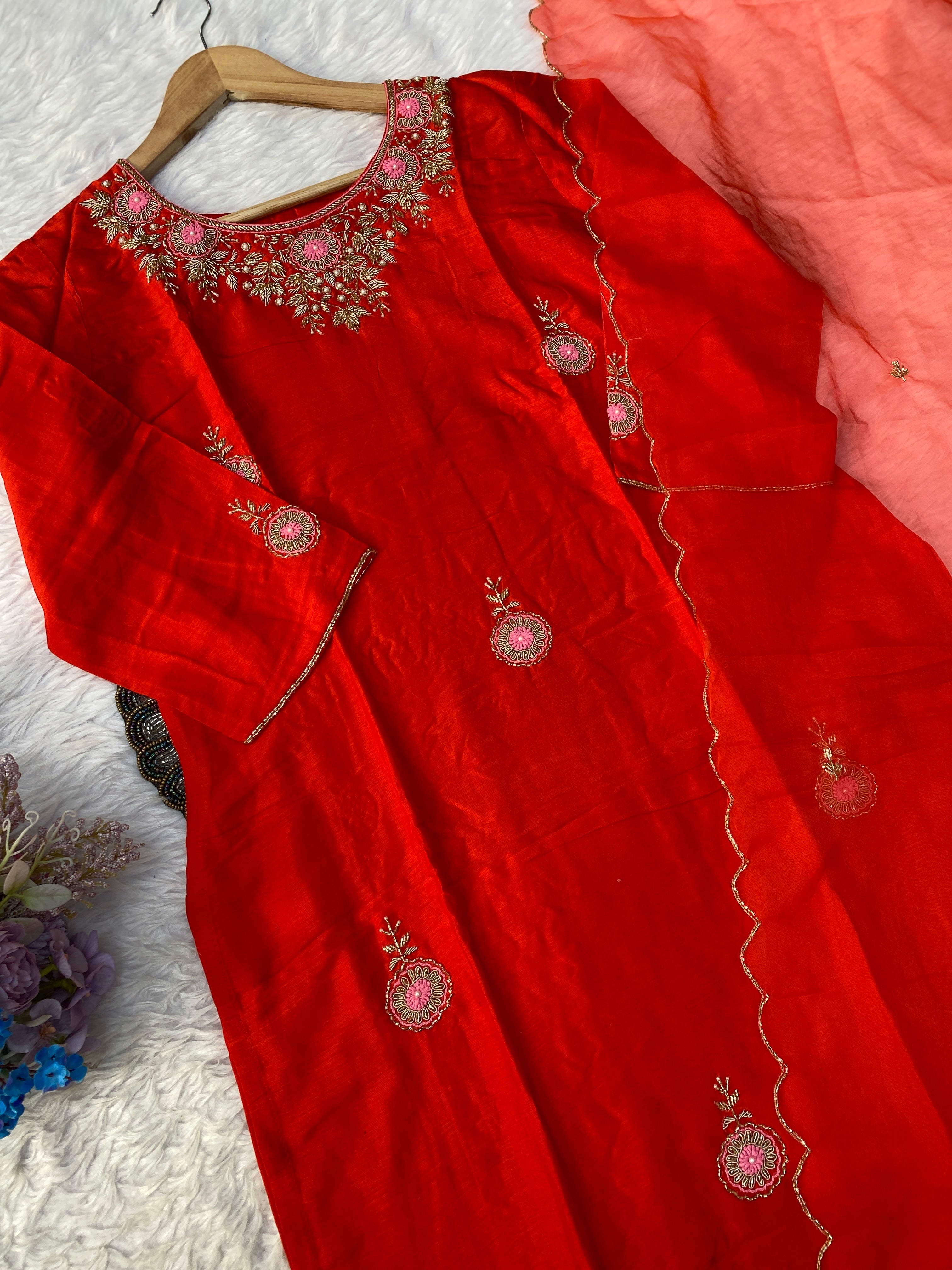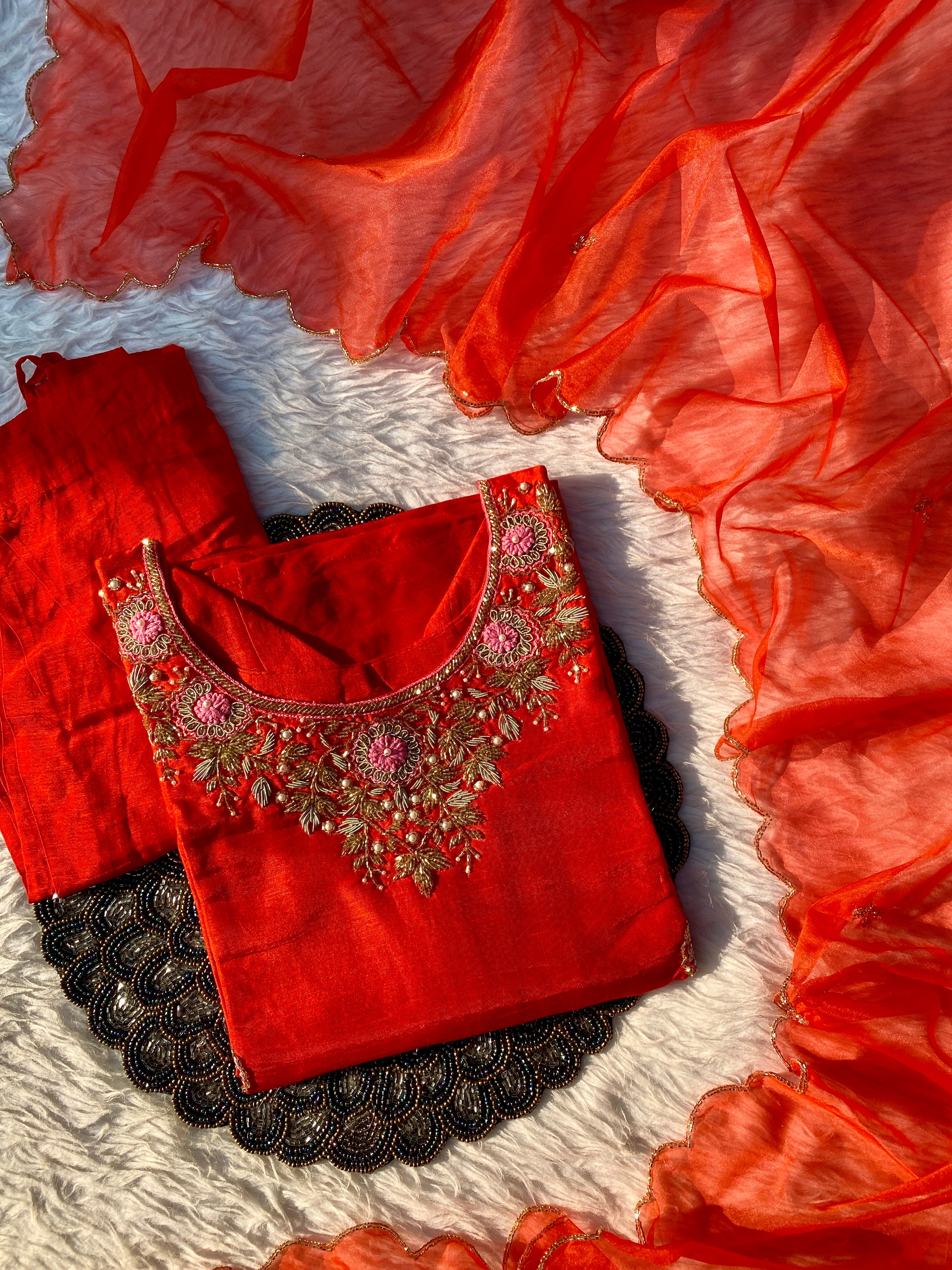 “Tamanna” Karwa chaut special Dola silk handwork suit set 🛍️