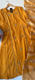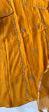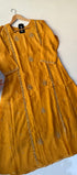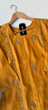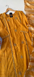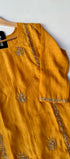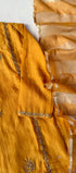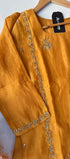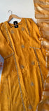Premium Mul Chanderi a line kurta set with heavy handwork on the neck line sleeve & daman of the top with a long Mul Chanderi dupatta paired with mul chanderi bottom