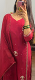 Premium Organza Viscose kurta set with heavy handwork on the neck line sleeve & daman of the top with a long Viscose dupatta paired with Orgaza viscose bottom