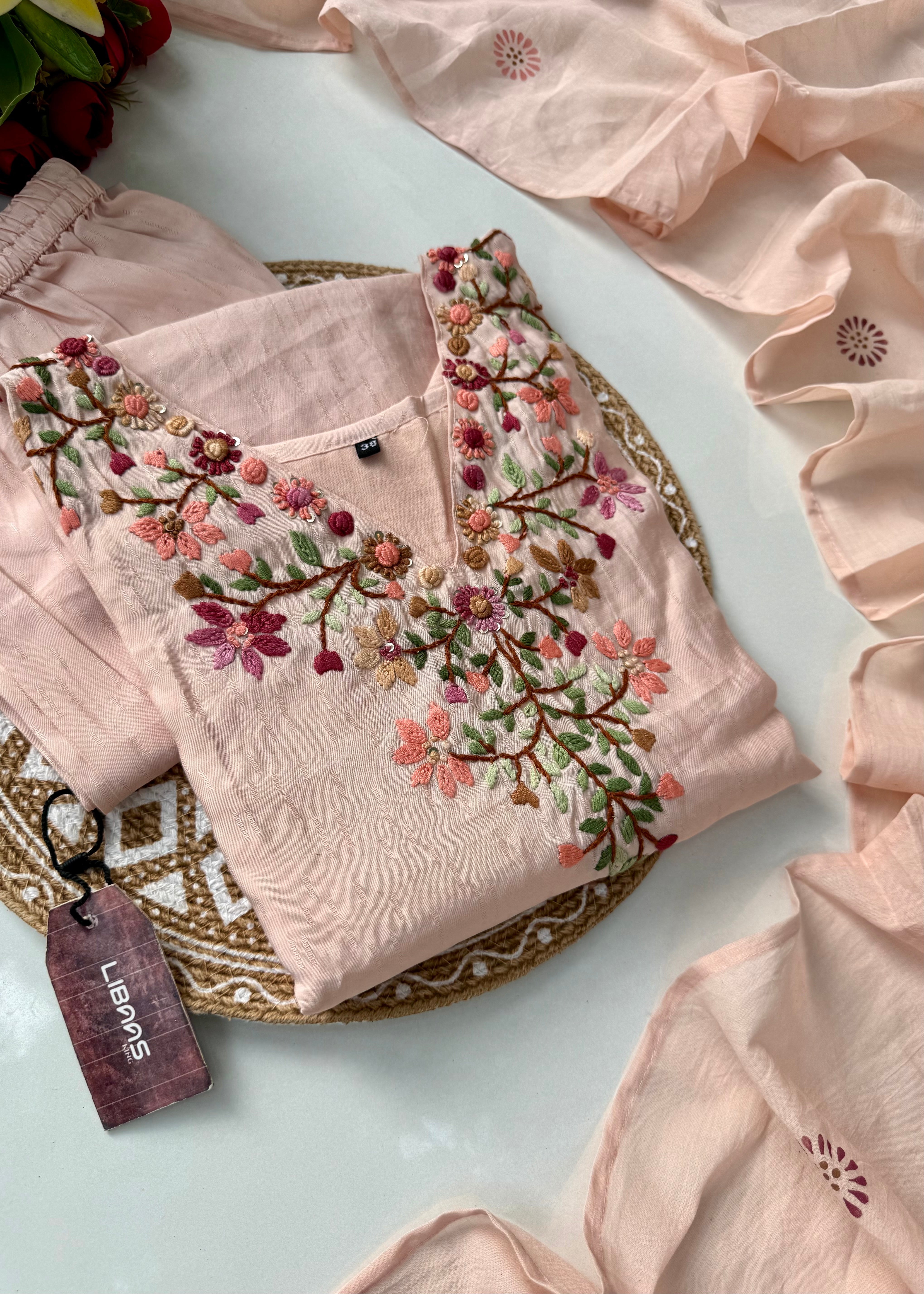“Valentin” Premium cotton thread work kurti bottom dupatta set