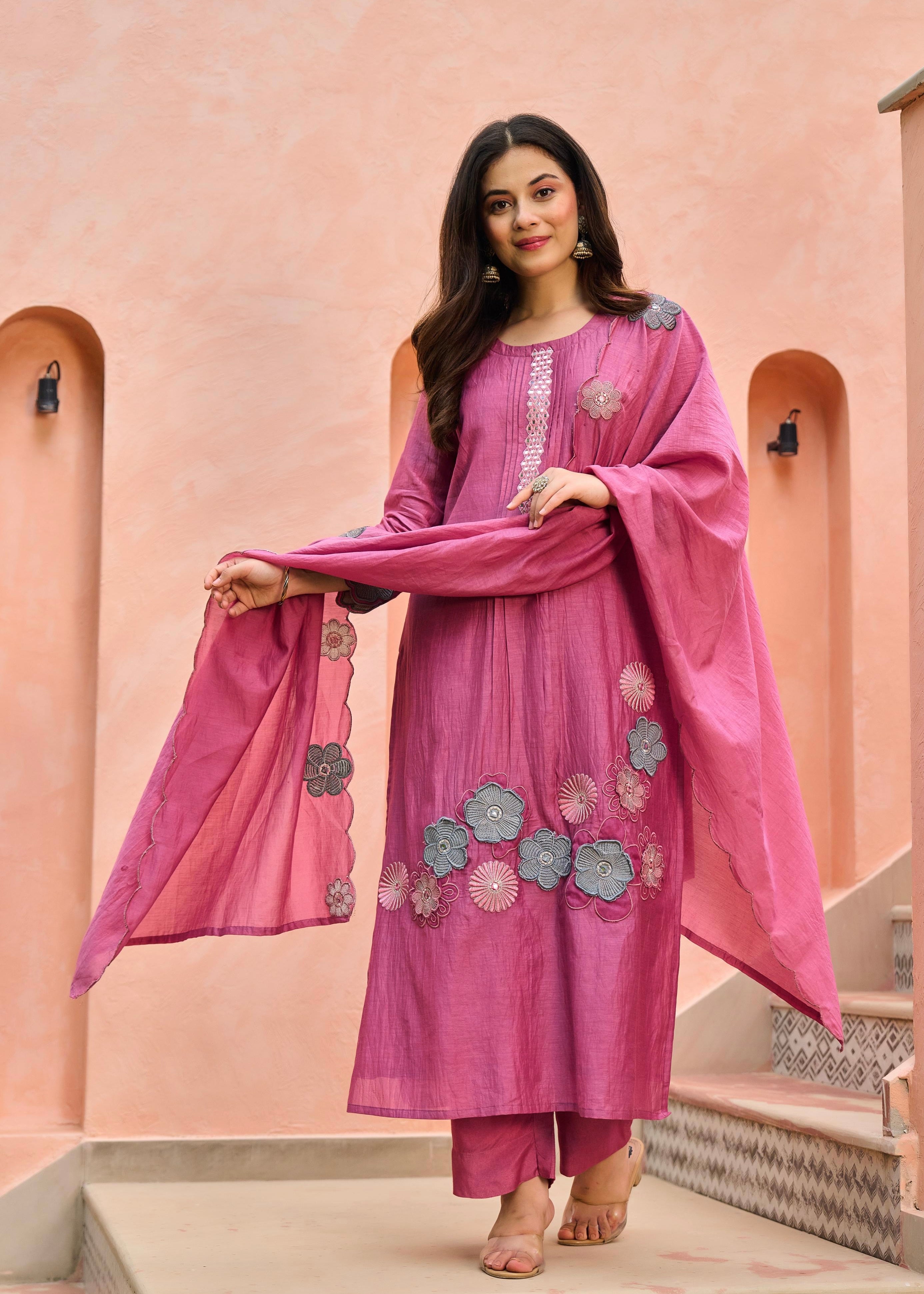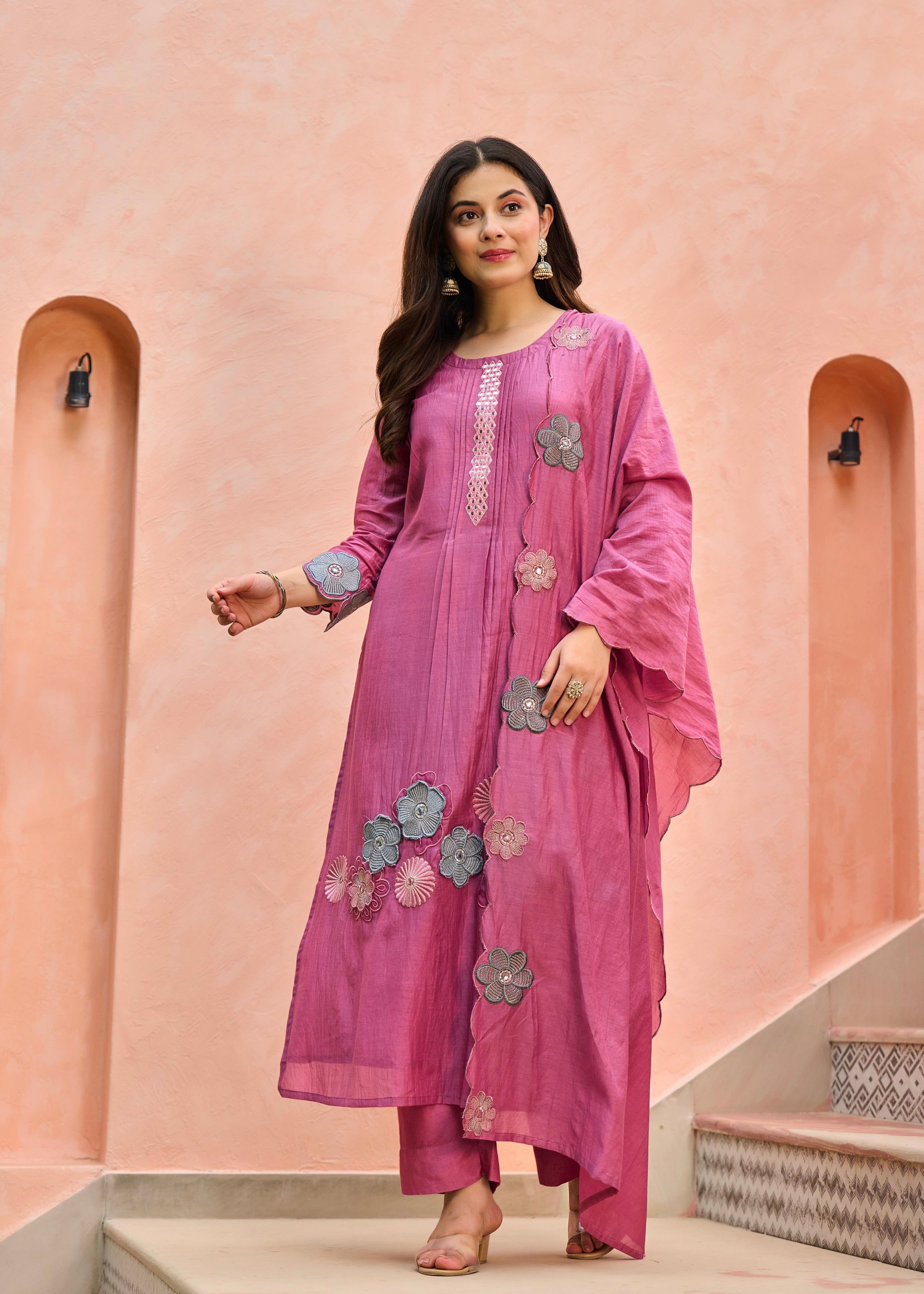 “Anya” Bloomberry Blush Mul Chanderi Suit Set