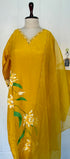 “Yeefa” Mustard Yellow dola silk hand print kurta set