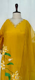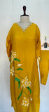 “Yeefa” Mustard Yellow dola silk hand print kurta set - XS