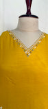Elevate your festive look with this Dola Silk straight kurta set, paired with a luxurious Organza dupatta. The outfit features beautiful hand handwork detailing on the neckline and subtle embellishments across the kurta. Perfect for festive occasions and traditional gatherings, this set blends elegance with rich craftsmanship.