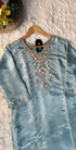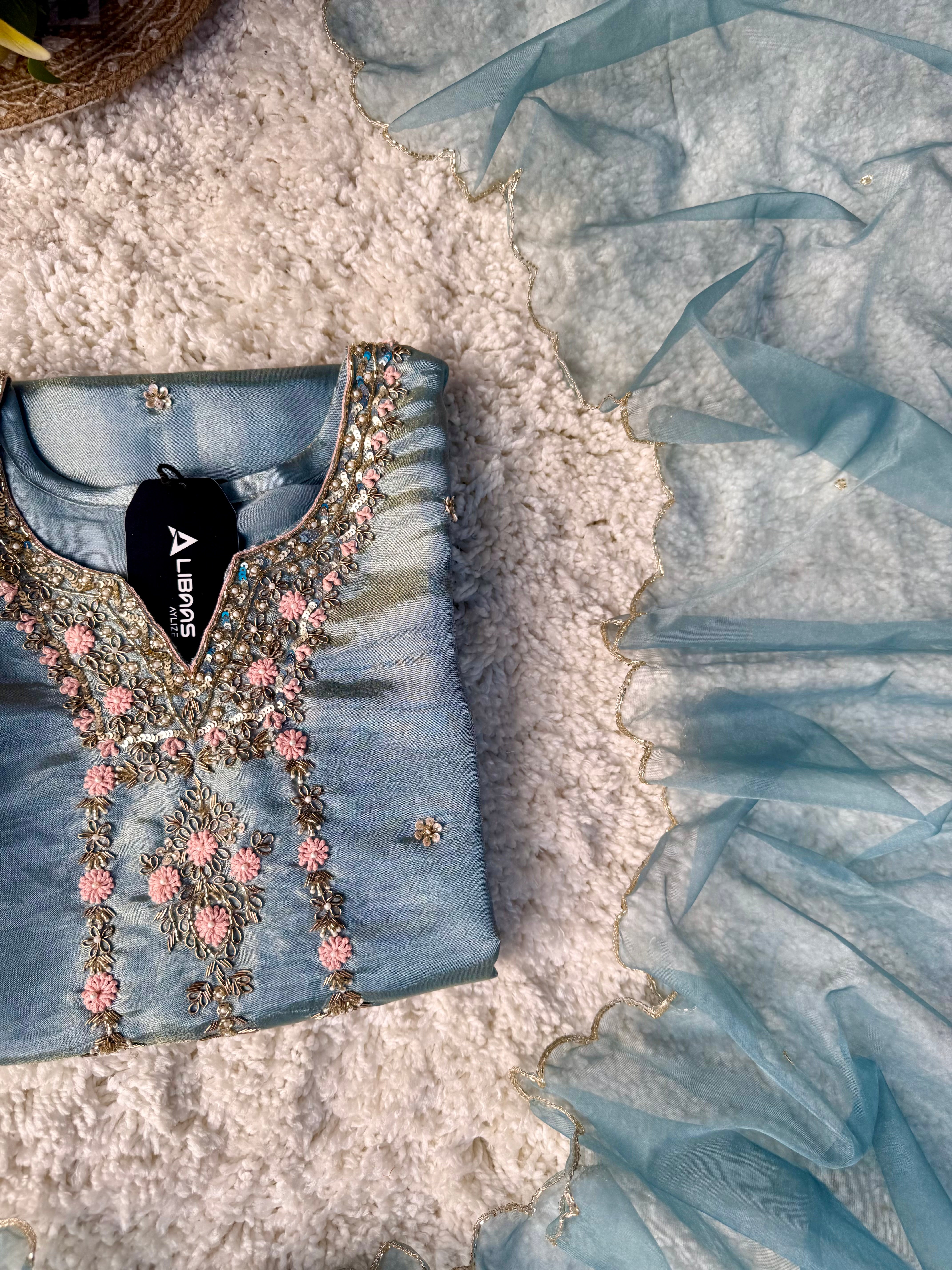 “Divya” Premium Blue Tissue Silk Kurta Set with Elegant Handwork - XS