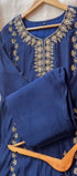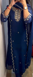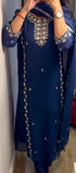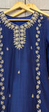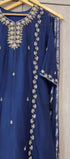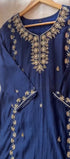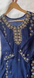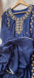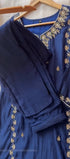 “Faraj” Navy Blue Pure Mul-Chanderi Party wear A Line suit set