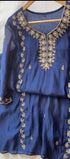 Beautiful premium mul chanderi kurti with Heavy handwork attached all over the top with mul cotton lining, comfortable mul chanderi pants with cotton lining and full length soft mul cotton dupatta covered with beautiful zari work.