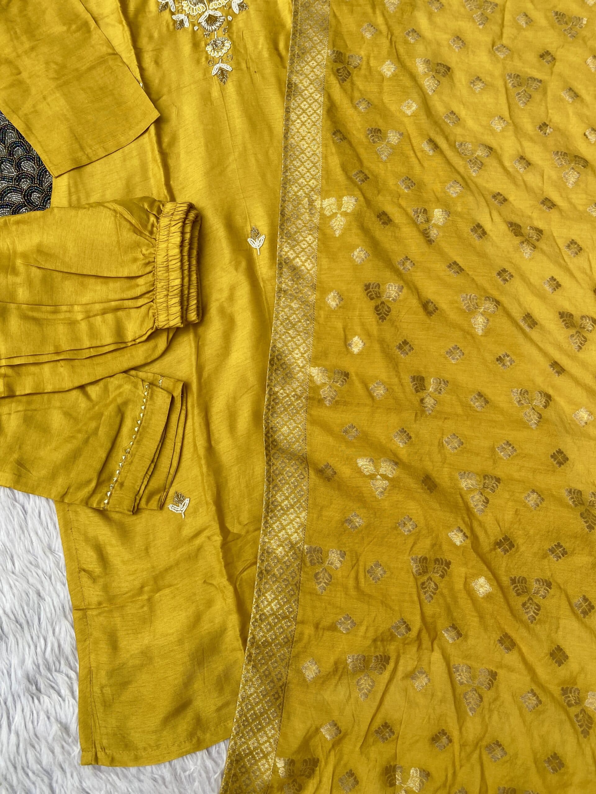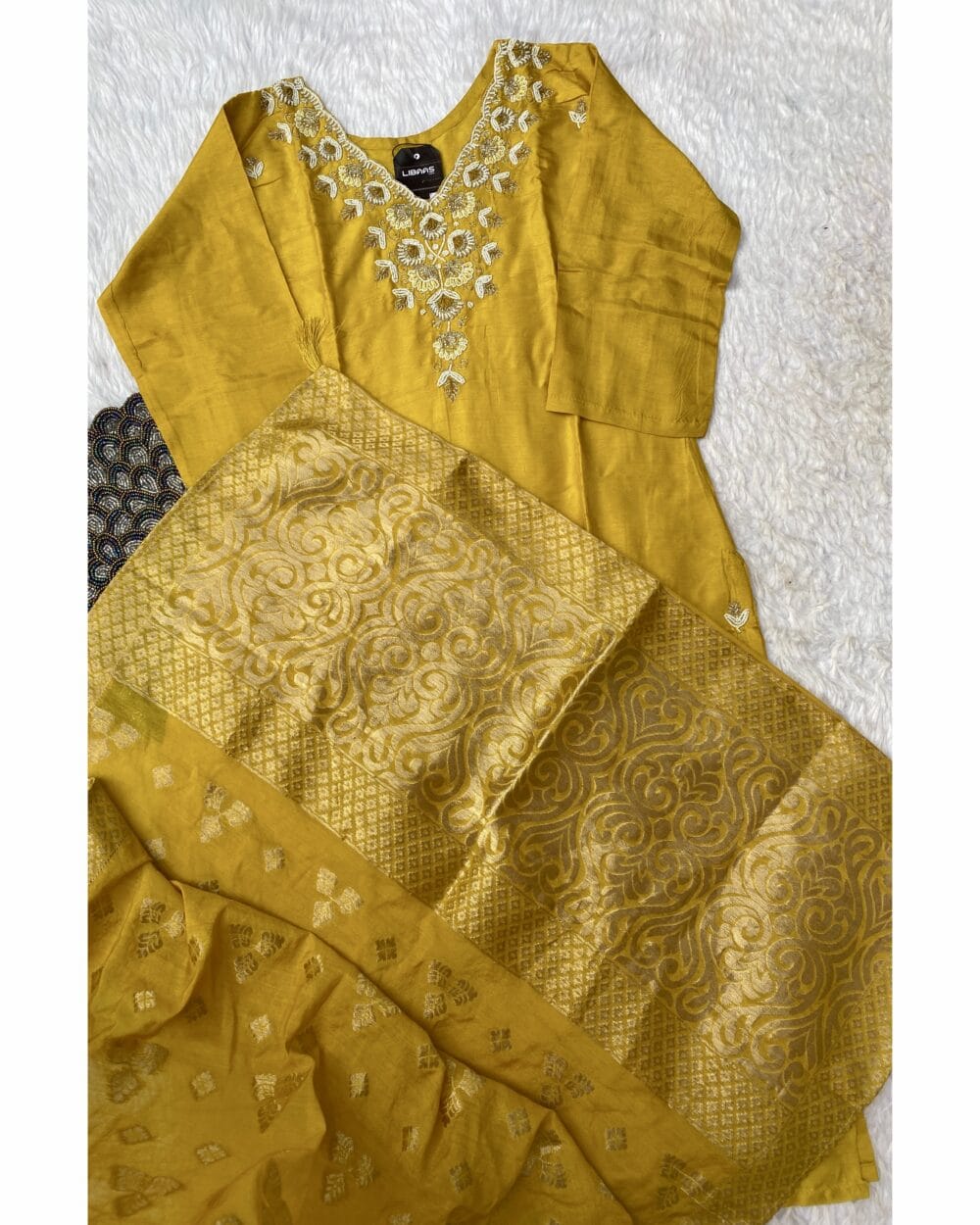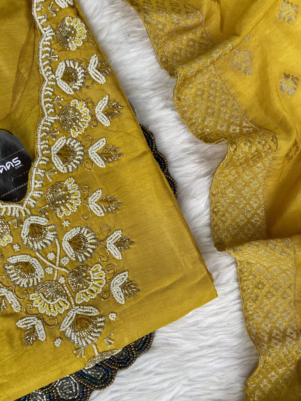 “Ziya” Beautiful yellow handwork dola silk set 🛍️