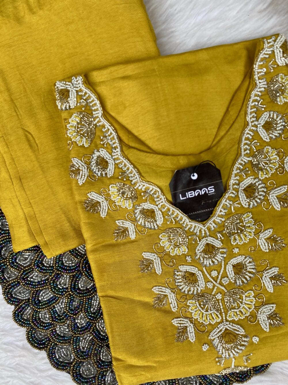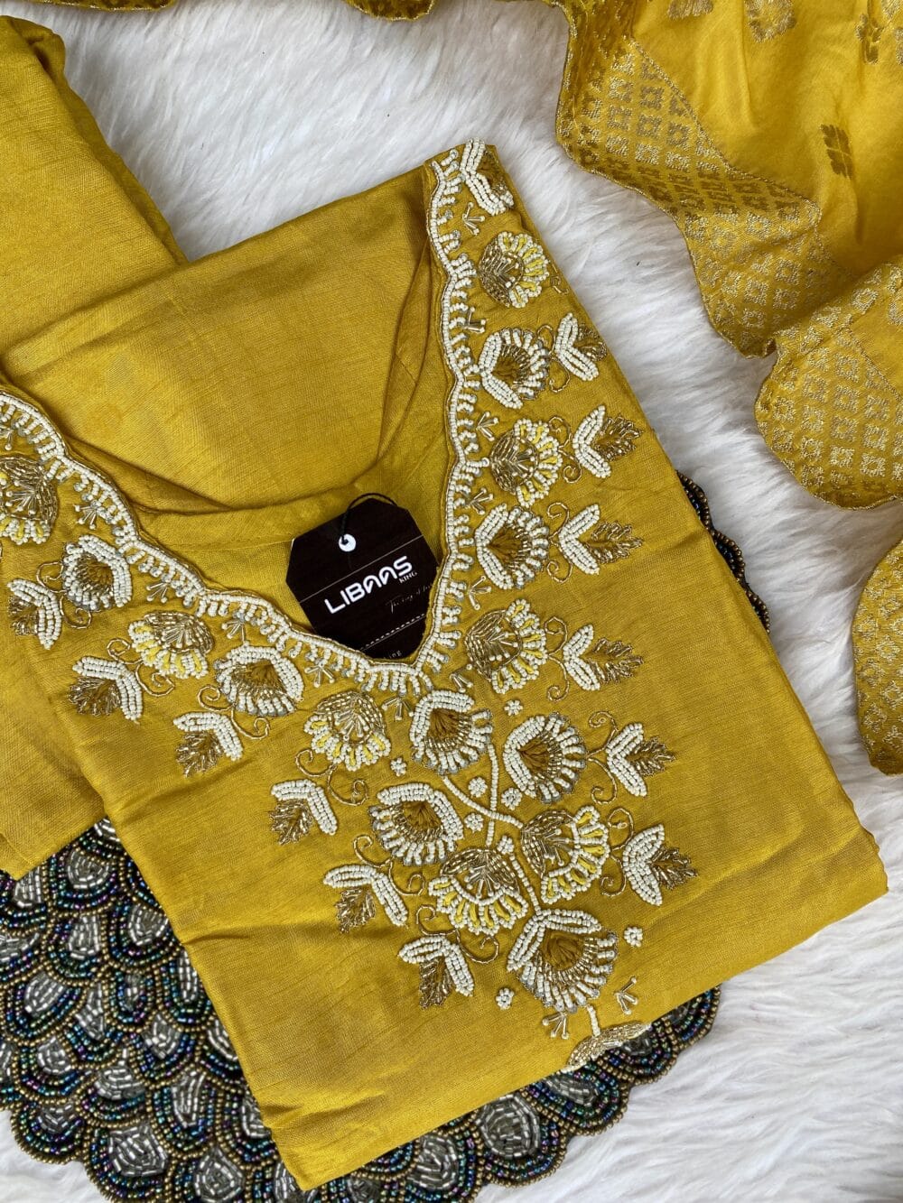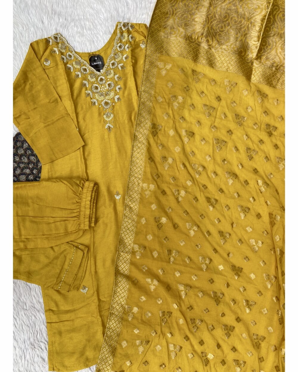 “Ziya” Beautiful yellow handwork dola silk set 🛍️